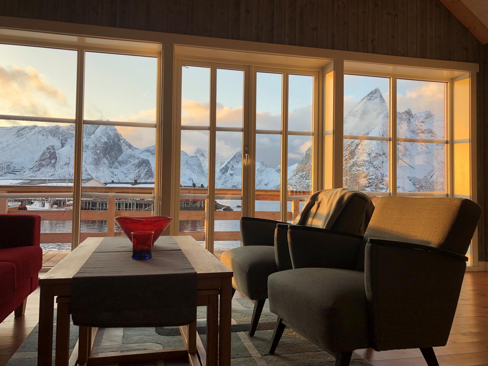Rorbua er del av våre moderne sjøhus fra 2017. Våre rorbuer ligger rett ved vannet med god utsikt utover Reinefjorden og den karakteristiske fjellformasjonen Olstinden.